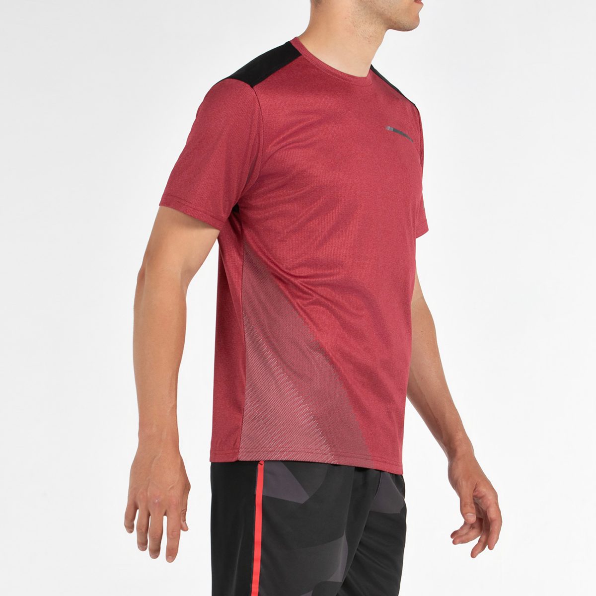 Camiseta de manga corta y cuello a la caja, confeccionada en tejido de poliéster con efecto vigoré que aporta un acabado técnico y moderno. Incorpora inserciones de tejido de rejilla a contraste en espalda, diseñadas para mejorar la ventilación y favorecer la circulación del aire en las zonas clave. Incluye detalles en tinta reflectante que refuerzan su carácter deportivo. Gracias a la tecnología Quickerdry de secado rápido, basada en microfilamentos, la prenda reduce la humedad, potencia la transpiración y mantiene una sensación de frescura y comodidad durante toda la actividad. Una camiseta técnica pensada para rendir al máximo cuando la intensidad sube.