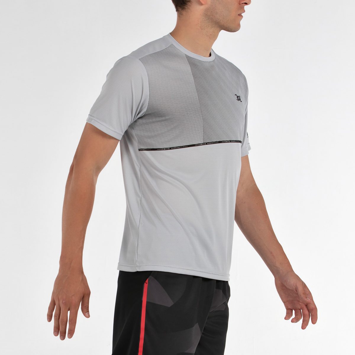 Camiseta de manga corta y cuello a la caja, con print y detalles reflectantes que aportan un estilo deportivo y actual. Está confeccionada en tejido de poliéster texturizado, ligero y cómodo, pensado para acompañarte en cada movimiento. Incorpora la tecnología Quickerdry de secado rápido, que gracias a sus microfilamentos reduce la humedad, favorece la transpiración y mantiene la piel seca incluso durante los entrenamientos más intensos. Una prenda técnica, funcional y versátil, diseñada para rendir al máximo.