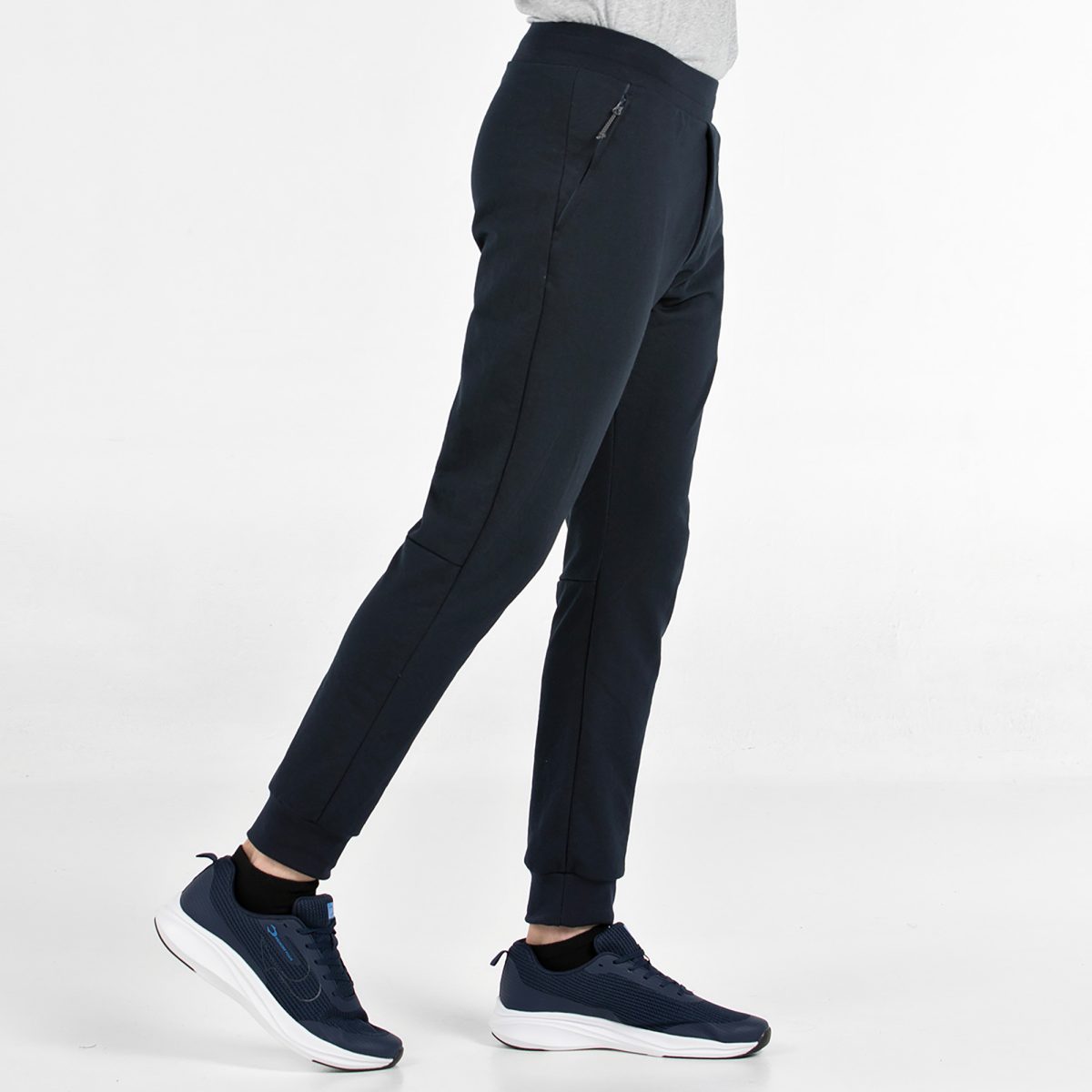 Pantalón de estilo deportivo y máximo confort, diseñado para ofrecer un ajuste cómodo y funcional en el día a día. Cuenta con cinturilla elástica en rib y cordón ajustable, que garantizan una sujeción perfecta, además de bolsillos laterales con cremallera para llevar tus esenciales de forma segura. Los puños en rib en el bajo aportan un ajuste moderno y favorecedor. Está confeccionado en tejido french terry elástico de poliéster con algodón, combinando suavidad, flexibilidad y durabilidad. El logo estampado completa la prenda con un toque distintivo. Un pantalón versátil, ideal para entrenar, descansar o completar un look deportivo casual.