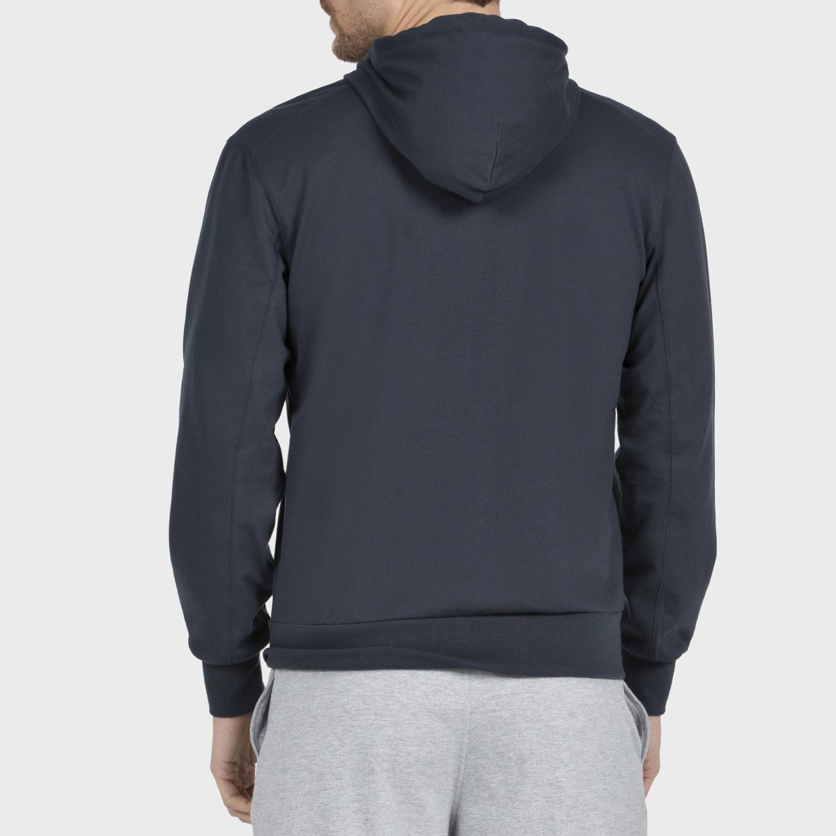Sudadera con capucha de estilo deportivo y urbano, perfecta para el día a día o para completar tu look. Cuenta con cremallera central, práctico bolsillo canguro y acabados de rib en puños y bajo que garantizan un ajuste cómodo y favorecedor. Está confeccionada en tejido french terry de poliéster y algodón, ofreciendo una combinación ideal de suavidad, calidez y durabilidad. Una sudadera versátil, cómoda y con personalidad, pensada para quienes viven el deporte.