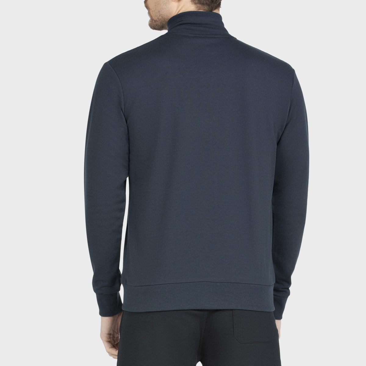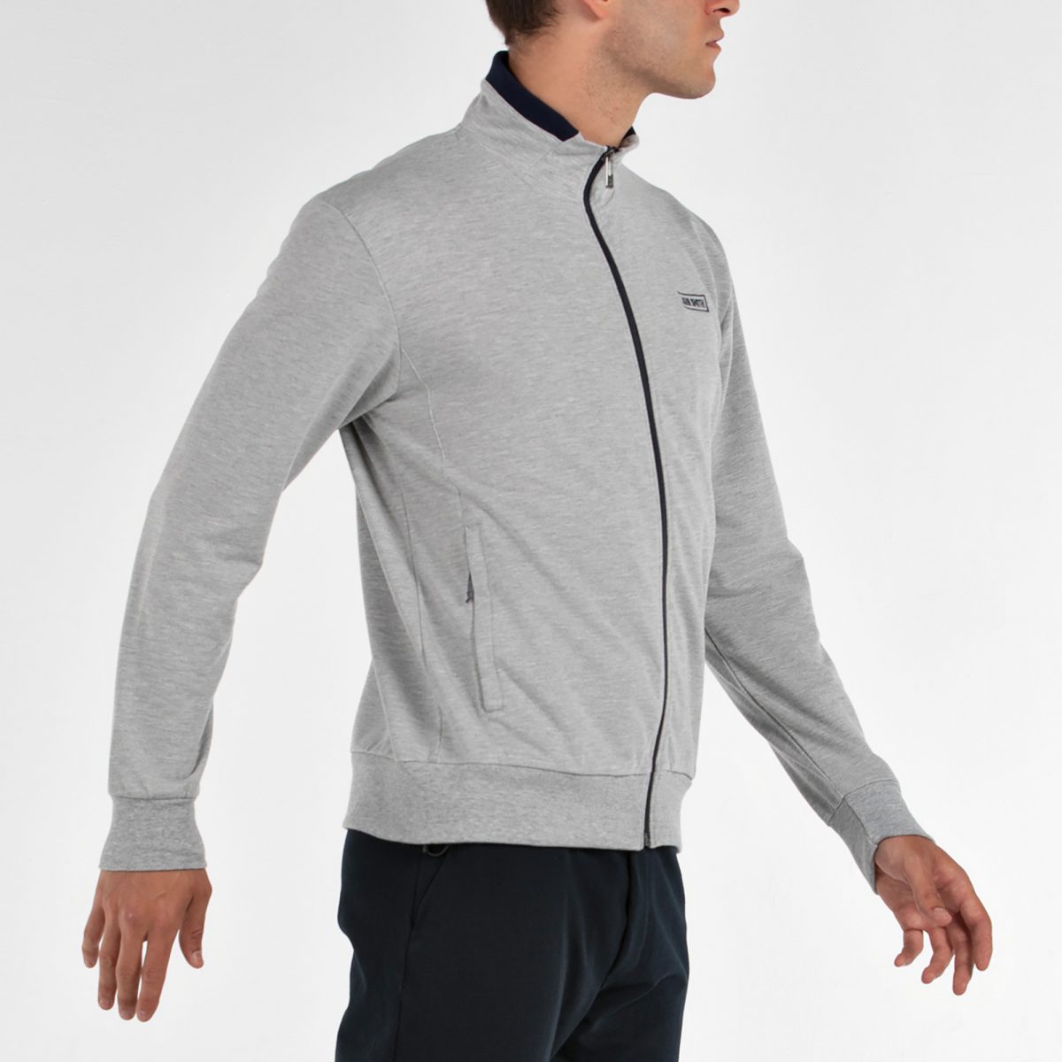 Sudadera de diseño sofisticado y funcional, perfecta para un look deportivo con un toque diferencial. Destaca por su cuello envolvente a contraste, que aporta estilo y protección extra, junto a una cremallera central que facilita el uso diario. Incorpora bolsillos con cremallera, ideales para llevar tus objetos personales de forma segura, y acabados de rib en puños y bajo que garantizan un ajuste cómodo y duradero. Confeccionada en tejido french terry de poliéster y algodón, ofrece una agradable sensación de suavidad y confort. El logo bordado completa la prenda con un acabado premium, convirtiéndola en una sudadera versátil y elegante, ideal para antes y después del entrenamiento o para el día a día.