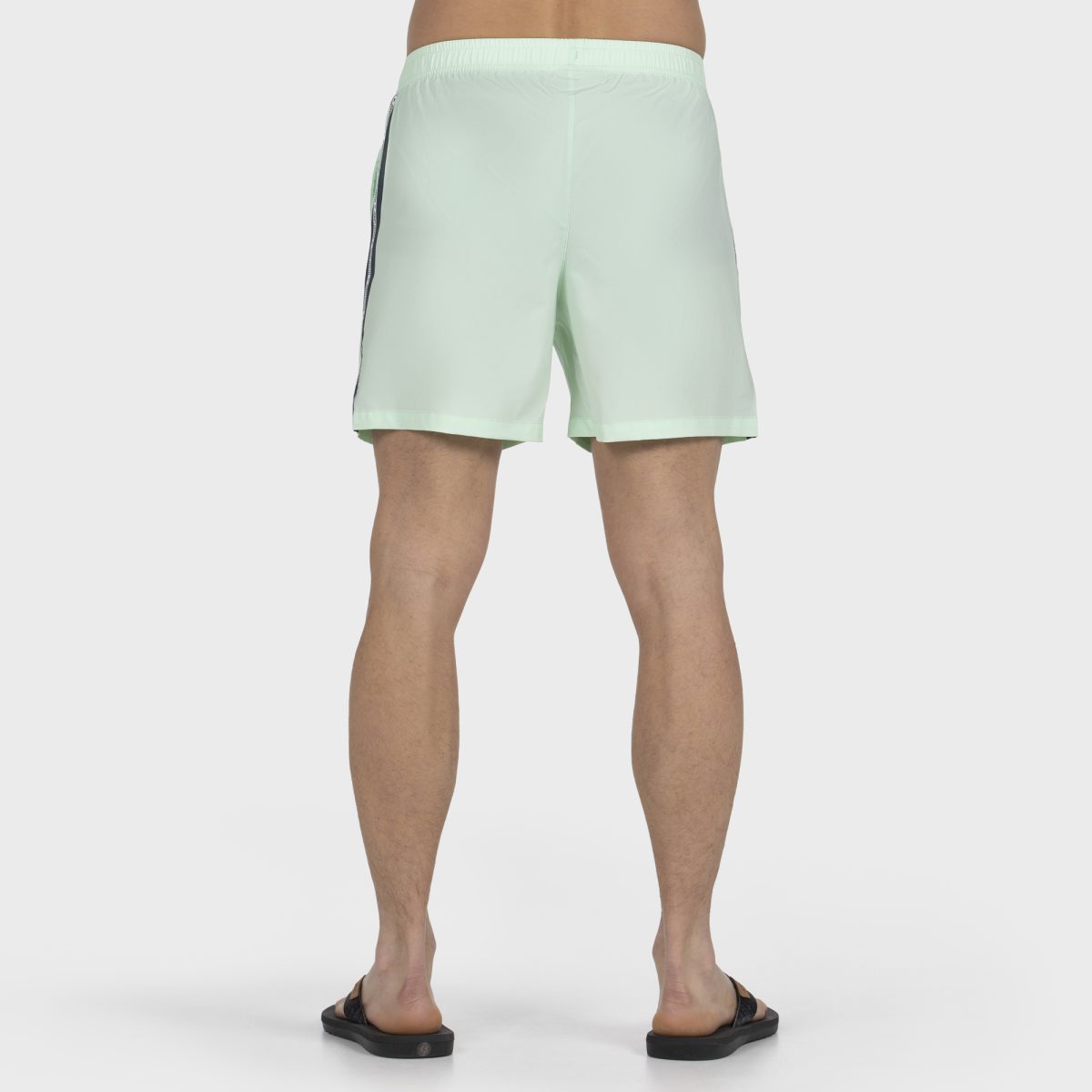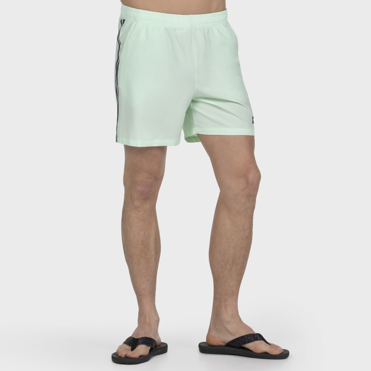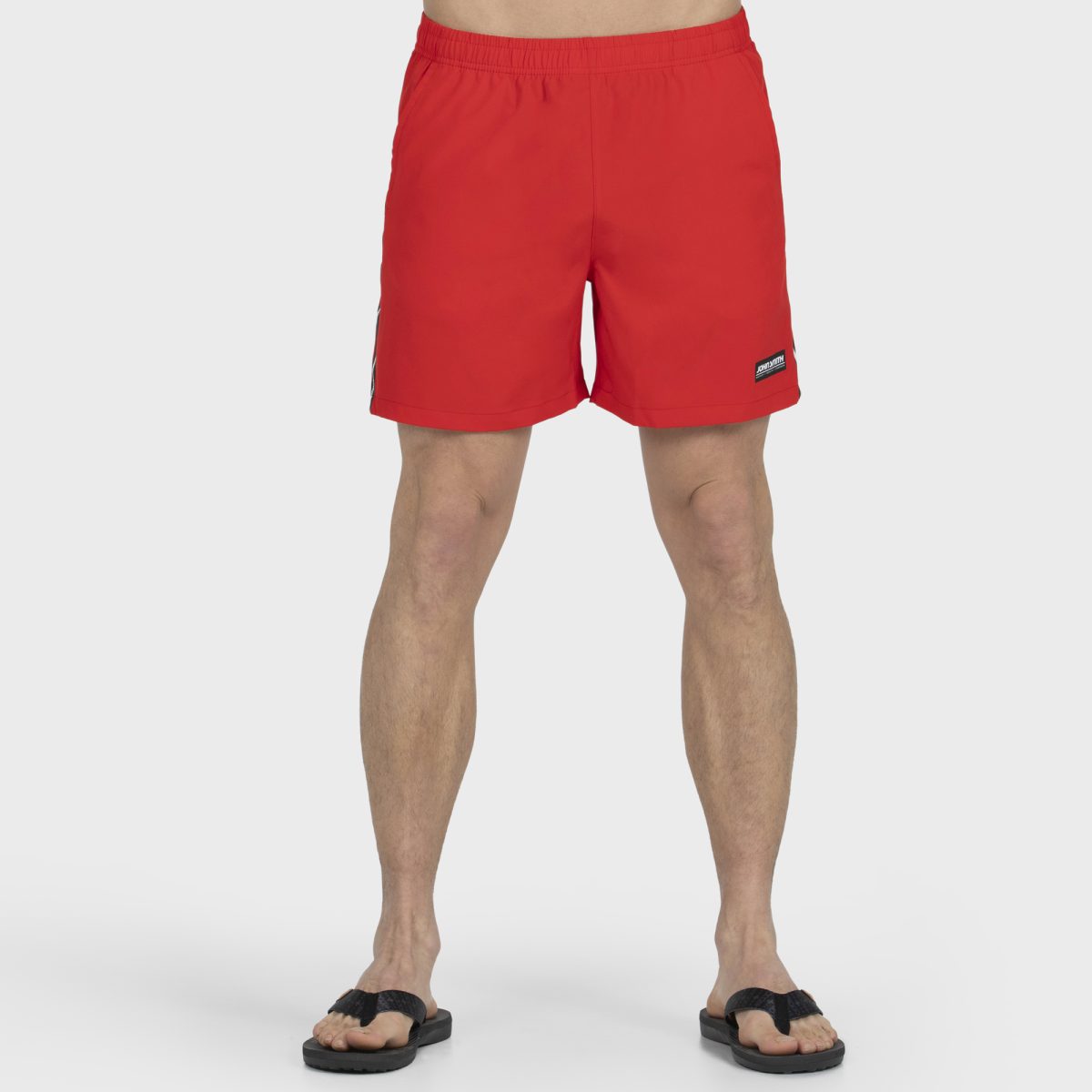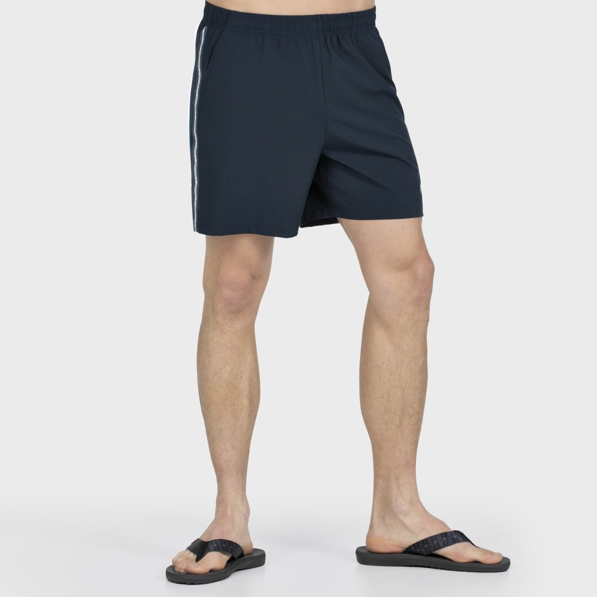 Bañador técnico y flexible. Con con un largo de 41 cm, incorpora cinturilla elástica con cordón de ajuste para un fit cómodo y seguro. Dispone de bolsillos laterales funcionales y un tercer bolsillo interior, además de suspensor interior que aporta mayor sujeción y confort durante el uso. Se completa con bandas laterales personalizadas que refuerzan su identidad deportiva. Confeccionado en tejido plano de poliéster elástico, ofrece ligereza y libertad de movimiento. Integra el acabado de secado rápido Binamic, que garantiza las prestaciones de un tejido bielástico, proporcionando flexibilidad en dos direcciones. Además, su tecnología basada en microfilamentos reduce la humedad y favorece la transpiración, manteniendo la prenda seca y cómoda tanto dentro como fuera del agua.