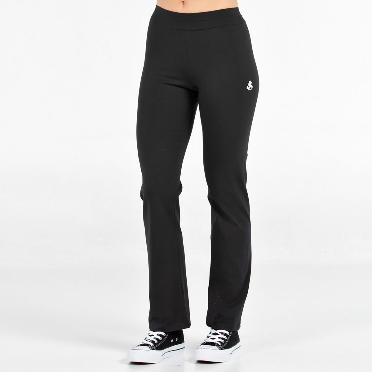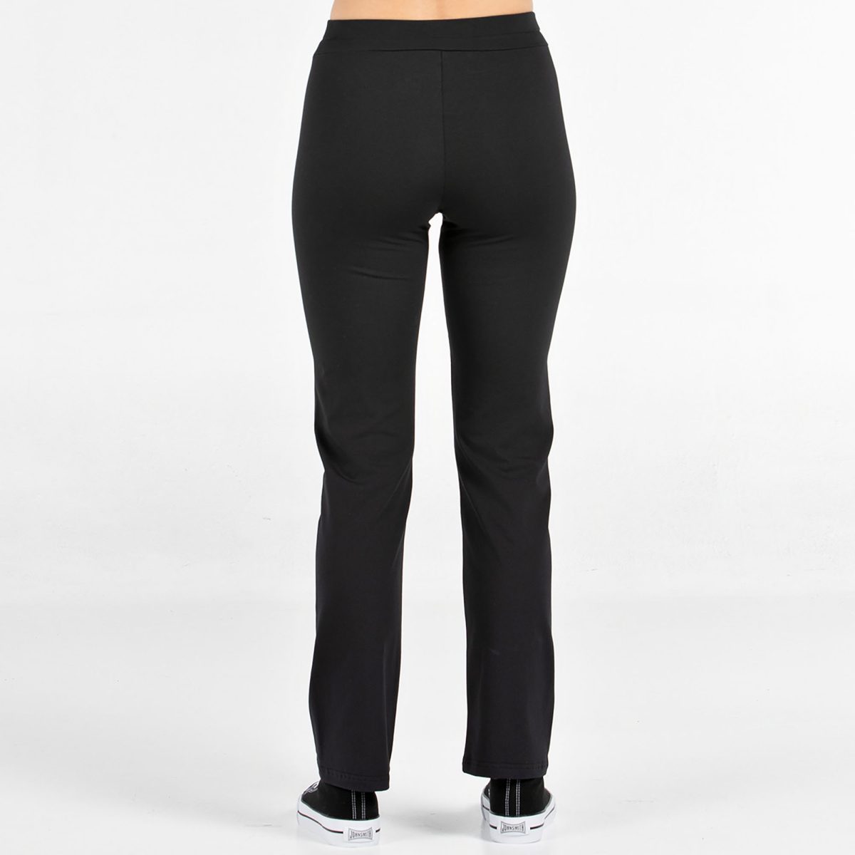Este pantalón básico de mujer destaca por su diseño acampanado, que aporta un aire moderno y favorecedor, y una cinturilla elástica que garantiza un ajuste cómodo durante todo el día. Está confeccionada en tejido de punto elástico de algodón, un material suave y agradable al tacto que se adapta al movimiento y ofrece una sensación de confort constante. Una prenda versátil, cómoda y fácil de combinar: ideal para el día a día, para entrenar suavemente o para completar un look casual con estilo.