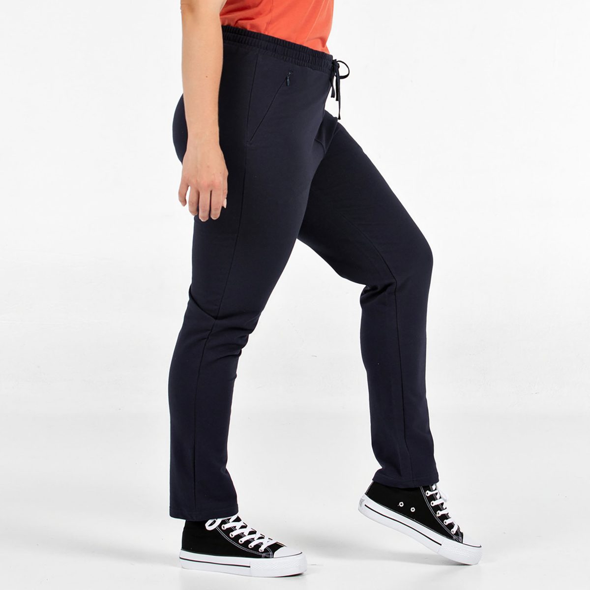 Este pantalón recto, de tallaje amplio está diseñado para ofrecer máxima comodidad y un estilo relajado pero actual. Incorpora una cinturilla elástica con cordón ajustable que garantiza un ajuste perfecto, junto con bolsillos laterales con cremallera para mayor funcionalidad y seguridad. Está confeccionado en punto de algodón elástico, un tejido suave y agradable al tacto que proporciona libertad de movimiento y confort durante todo el día. Una prenda cómoda, práctica y fácil de combinar: ideal para el día a día, para entrenar suavemente o para completar un look casual con estilo. Perteneciente a nuestra línea Proportions, de tallaje especial, que busca adaptar los patrones actuales a la mujer real.
