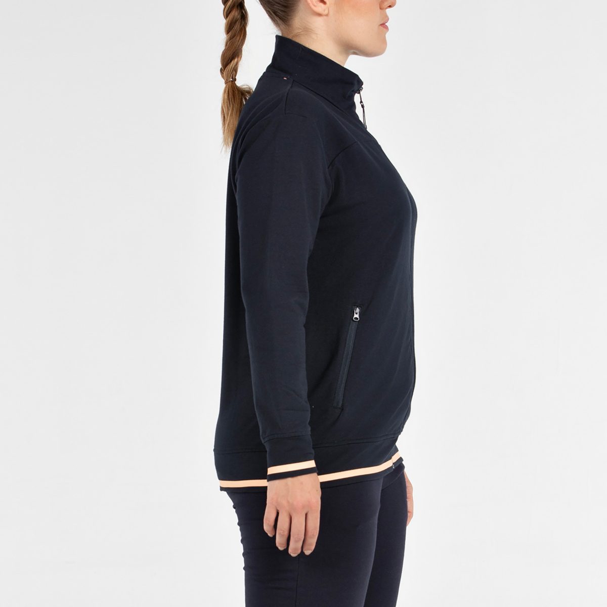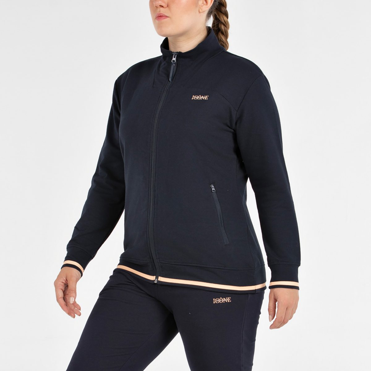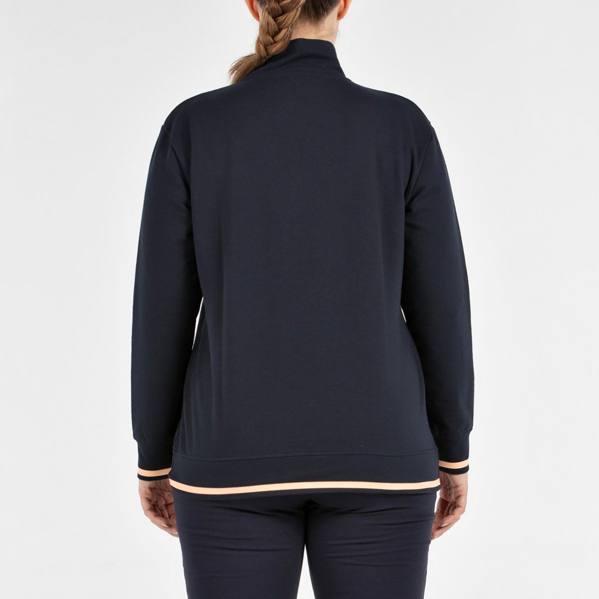 Sudadera abierta de estilo deportivo y ajuste amplio. Diseñada con cremallera central, incorpora bolsillos laterales con cremallera que aportan funcionalidad y seguridad. Los puños y el bajo están decorados con banda a contraste, añadiendo un detalle visual distintivo y actual. Confeccionada en punto elástico de algodón, ofrece suavidad, comodidad y libertad de movimiento. Pertenece a nuestra línea de tallaje amplio o Proportions, ideal para quienes buscan un fit más relajado sin renunciar a un estilo deportivo y contemporáneo.