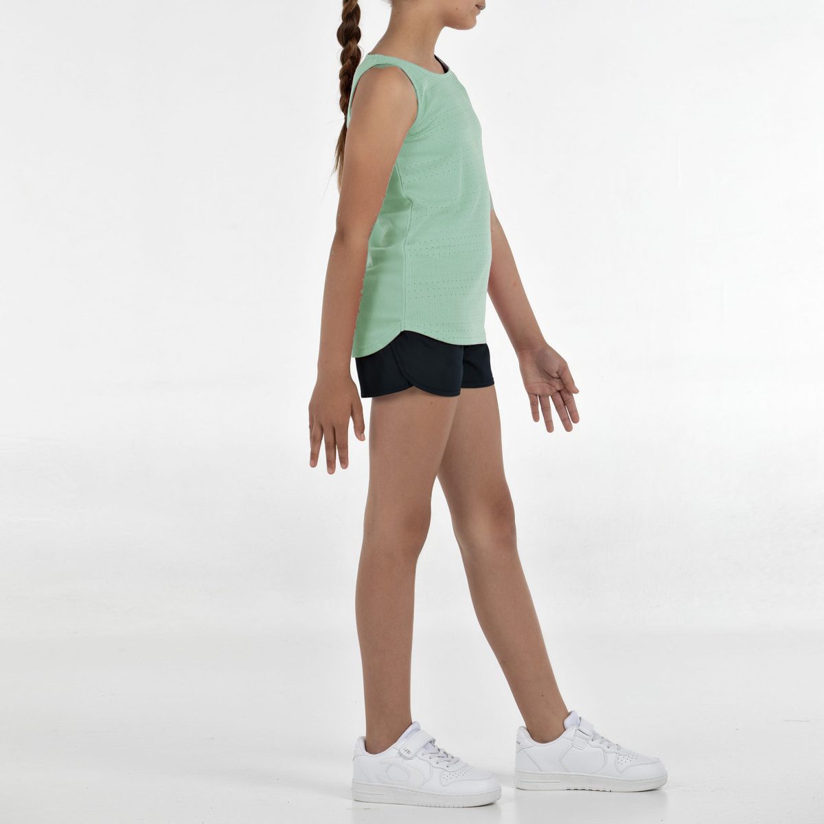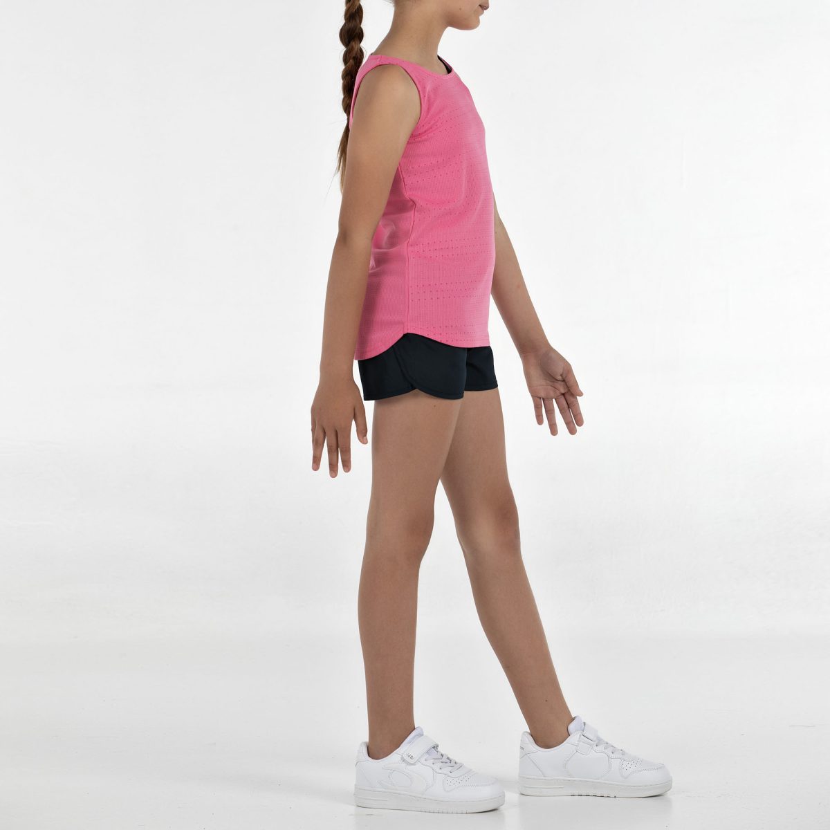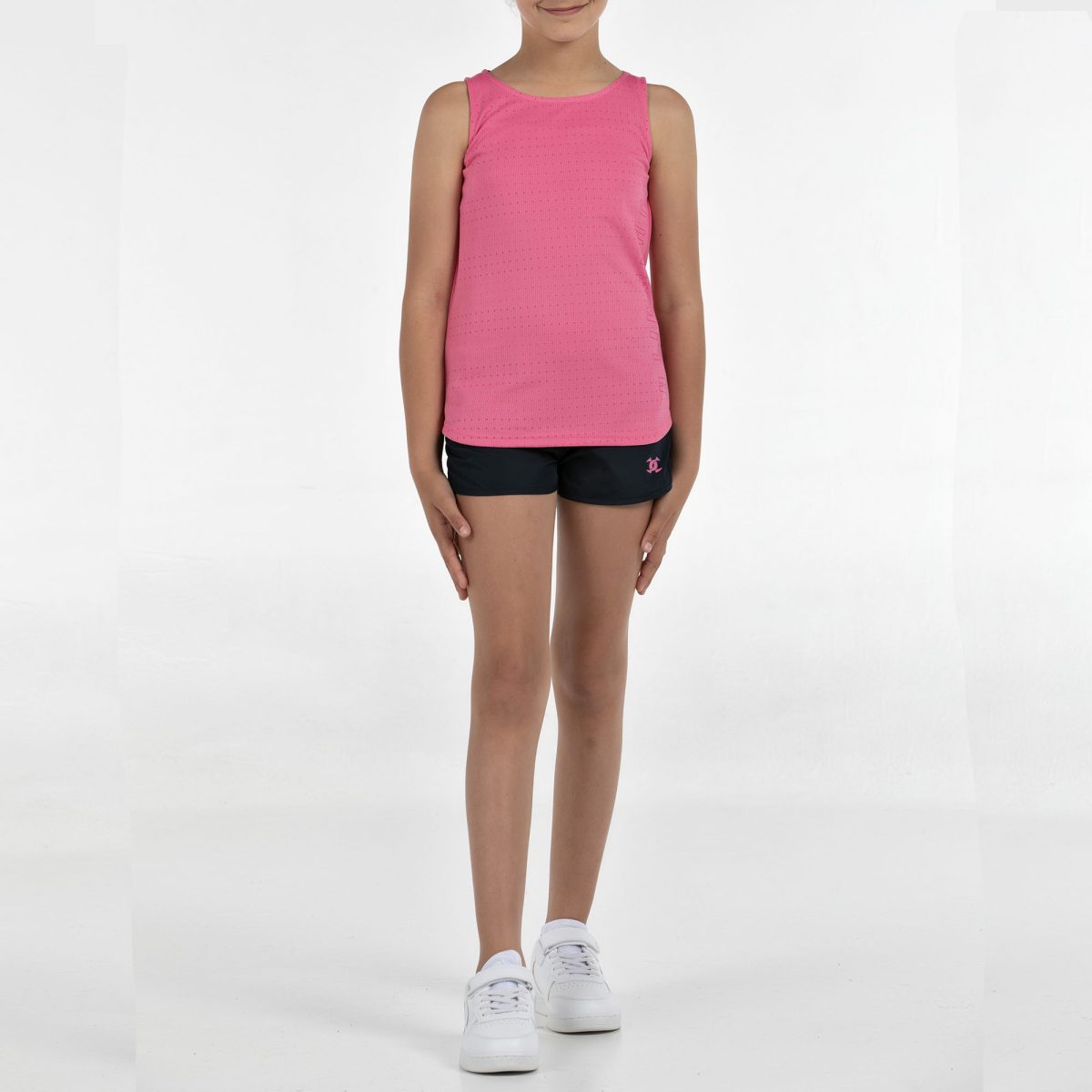 Conjunto junior para niña, diseñado para ofrecer frescura y libertad de movimiento, perfecto para los días más activos. La camiseta sin mangas, confeccionada en tejido ligero de poliéster, incorpora un gráfico en el delantero que aporta un estilo moderno y deportivo. El pantalón corto cuenta con cordón ajustable y un práctico bolsillo interior en la cintura, pensado para mayor funcionalidad. El conjunto integra la tecnología de secado rápido Quickerdry, basada en microfilamentos que ayudan a reducir la humedad y favorecer la transpirabilidad, manteniendo a los más jóvenes secos y cómodos durante toda la actividad. Un conjunto ligero, práctico y versátil, ideal para entrenar, jugar o disfrutar del deporte a diario
