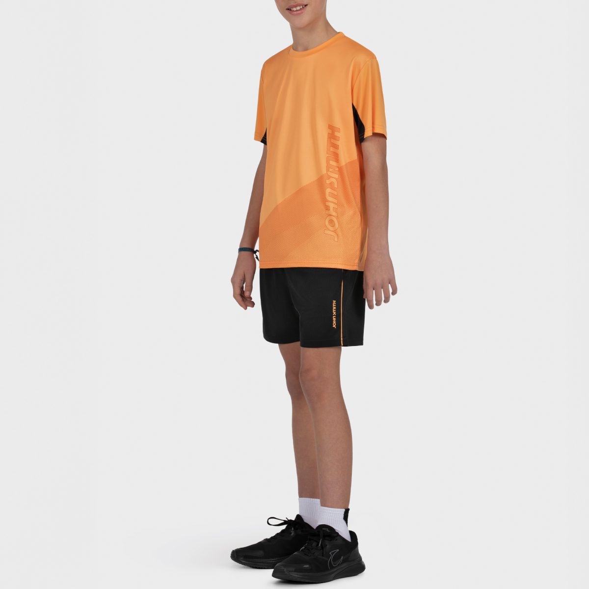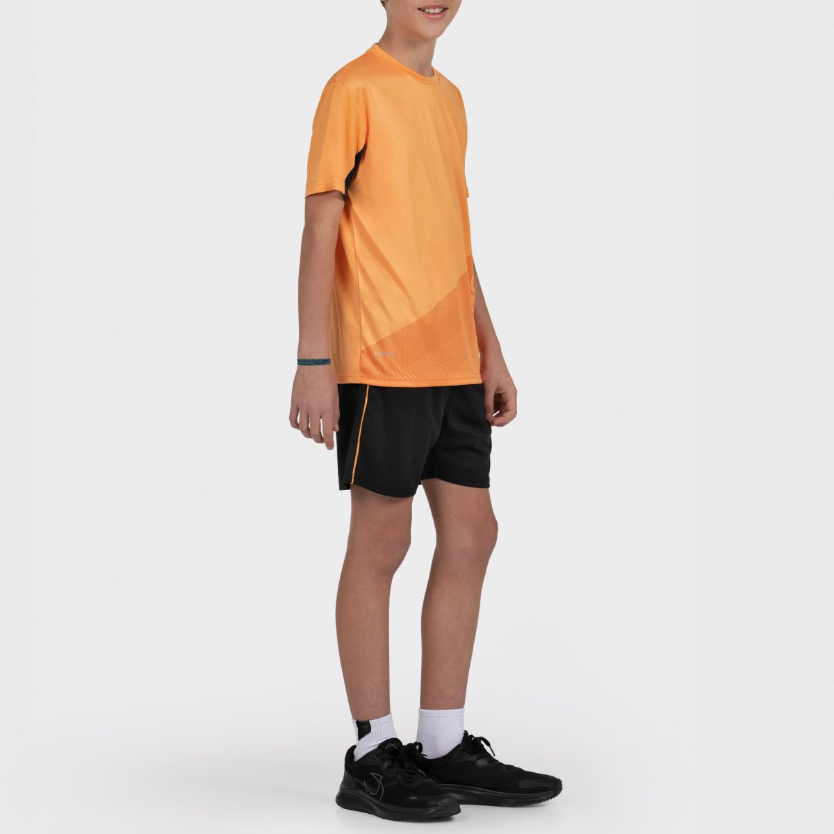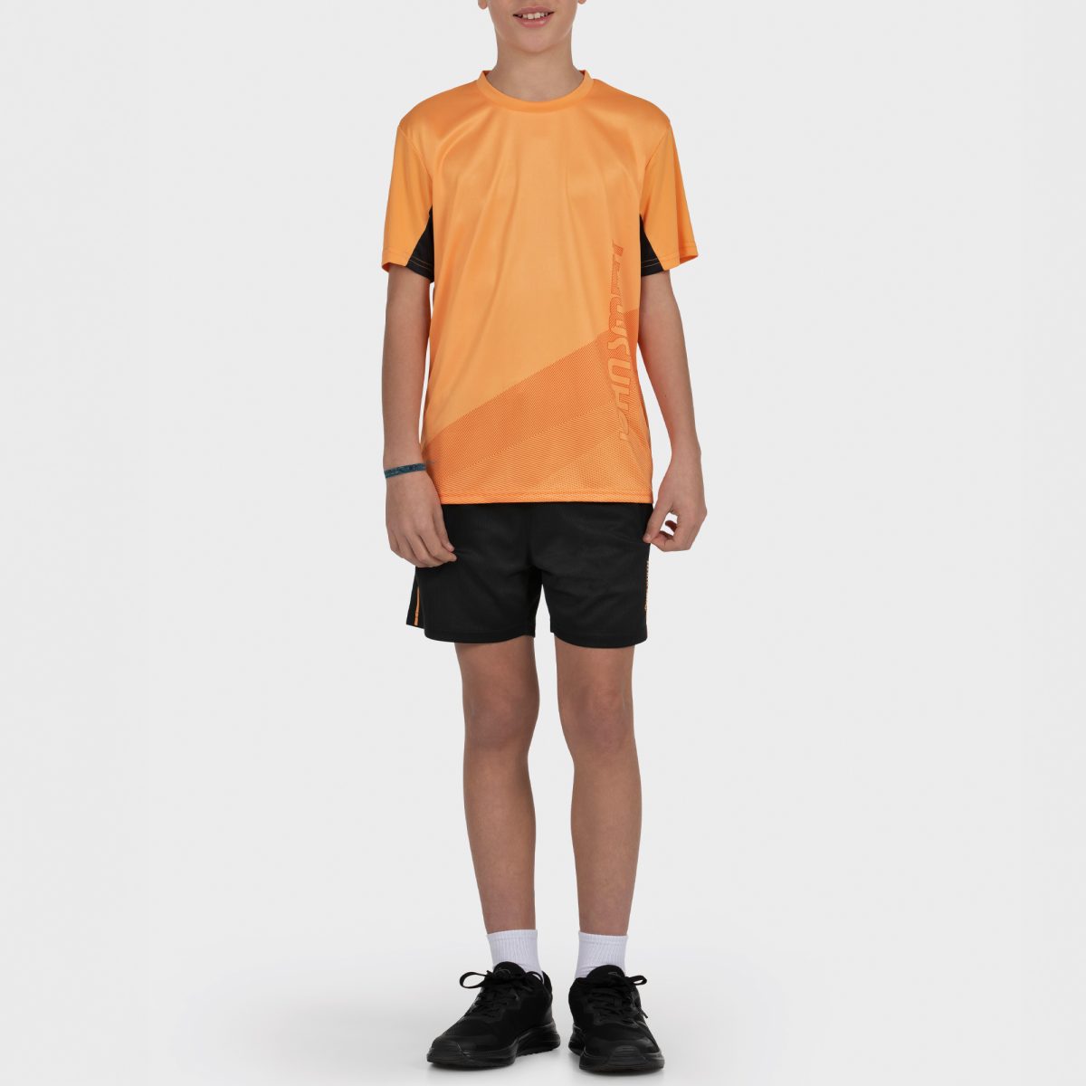 Este conjunto junior está diseñado para ofrecer comodidad, frescura y un estilo deportivo lleno de energía. Incluye una camiseta de manga corta sublimada, con piezas a contraste en las mangas que aportan un look dinámico y moderno, y un short con cinturilla elástica y cordón ajustable, bolsillos laterales y un vivo a contraste en el lateral que completa el diseño con un toque actual. Está confeccionado en tejido ligero de poliéster, ideal para el movimiento diario, e incorpora la tecnología Quickerdry de secado rápido, que utiliza microfilamentos para reducir la humedad, mejorar la transpiración y mantener a los más pequeños cómodos y secos durante toda la actividad. Un conjunto práctico, ligero y con estilo: perfecto para jugar, entrenar o disfrutar del tiempo libre con total comodidad.