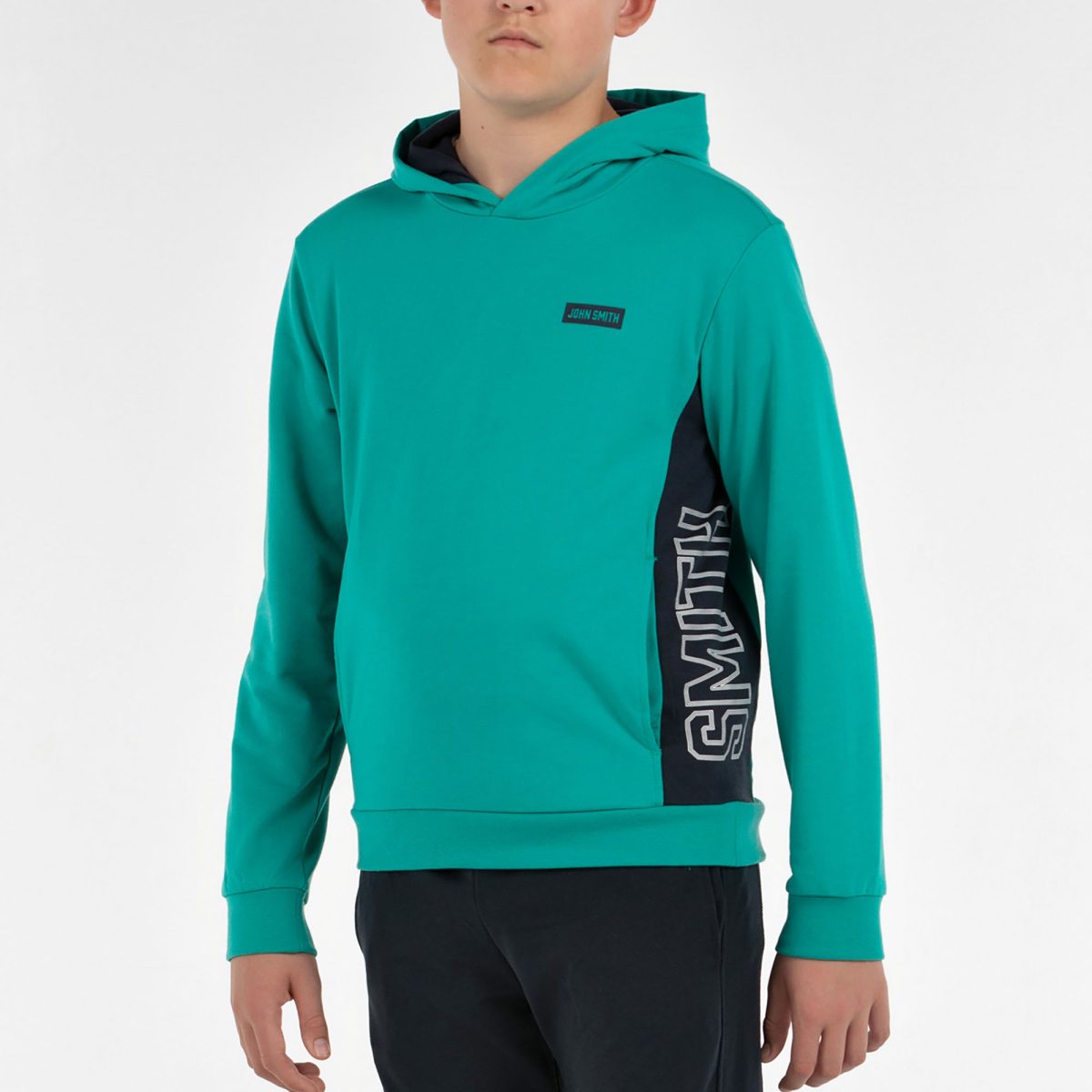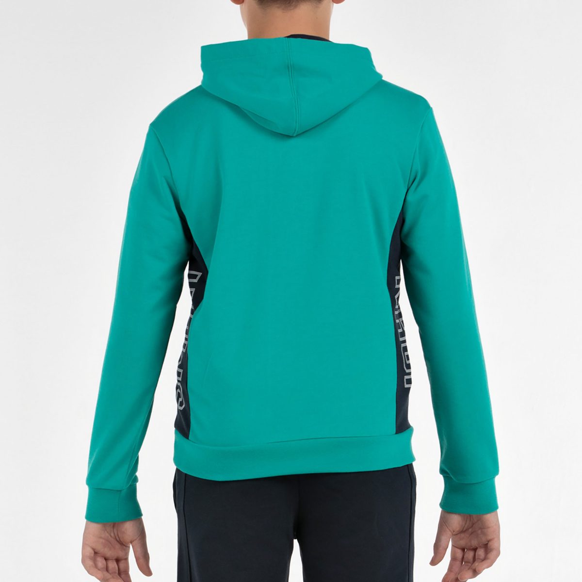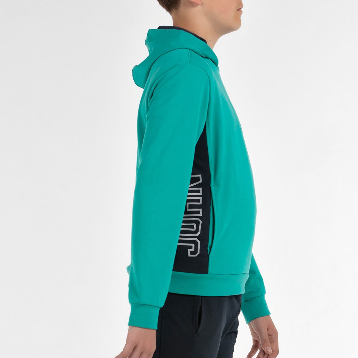 Esta sudadera junior con capucha combina comodidad, estilo y un diseño lleno de energía. Destaca por sus bandas laterales estampadas a contraste, que aportan un toque moderno y dinámico, y por el logo en el pecho, que refuerza su identidad deportiva. Está confeccionada en punto de poliéster con algodón, un tejido suave, resistente y cómodo, ideal para el uso diario y para acompañar a los más jóvenes en cualquier actividad. Una sudadera práctica, cómoda y con mucho estilo: perfecta para el día a día, el cole o el tiempo libre, con un look deportivo que nunca falla.