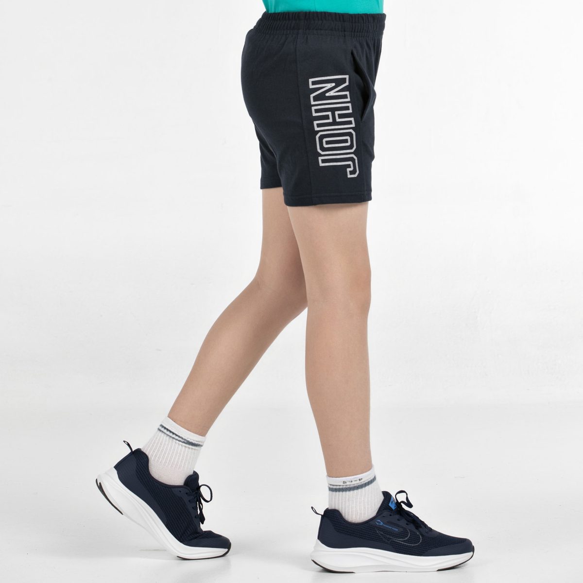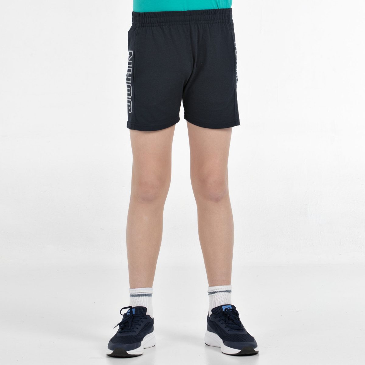 Short junior de estilo deportivo y cómodo, perfecto para el día a día o para la práctica deportiva. Cuenta con cinturilla elástica con cordón ajustable, que garantiza un ajuste seguro y confortable, y bolsillos laterales prácticos. La banda lateral personalizada añade un toque distintivo y actual al diseño. Confeccionada en tejido ligero de algodón con poliéster, ofrece una sensación suave y fresca, ideal para los días más activos. Un short versátil y funcional, pensada para moverse con total libertad y estilo.